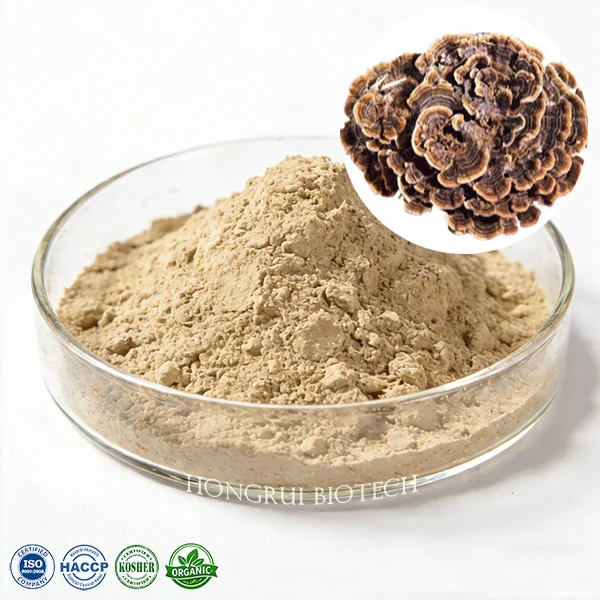 Turkey Tail Mushroom Extract is derived from Trametes versicolor using standardized extraction and concentration processes.